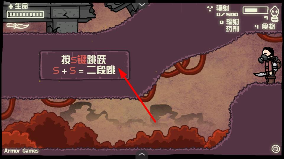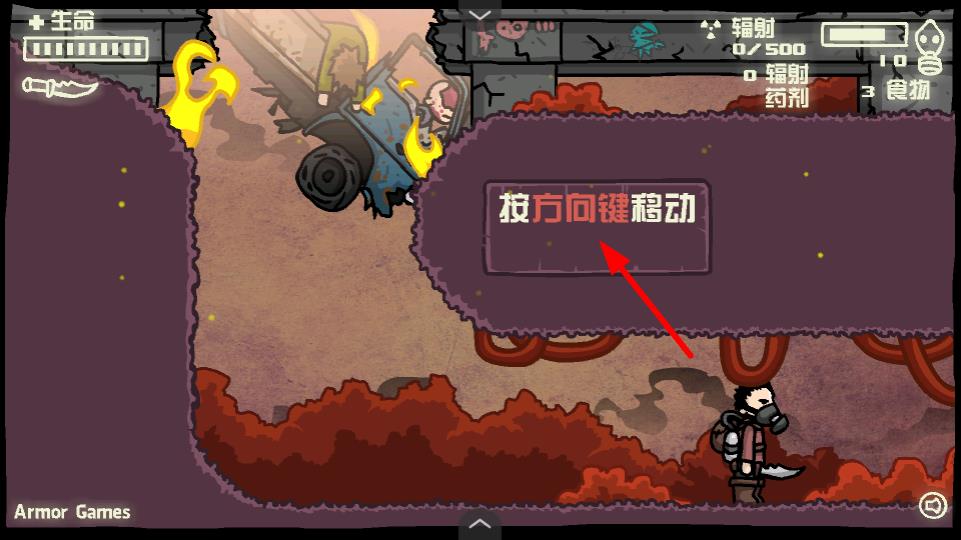 1、按方向键可控制角色移动,在废土场景中探索资源、躲避危险,角色的移动基础操作。