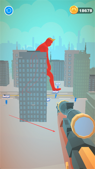 1、操控狙击枪瞄准城市中的红色巨人,寻找最佳射击时机。