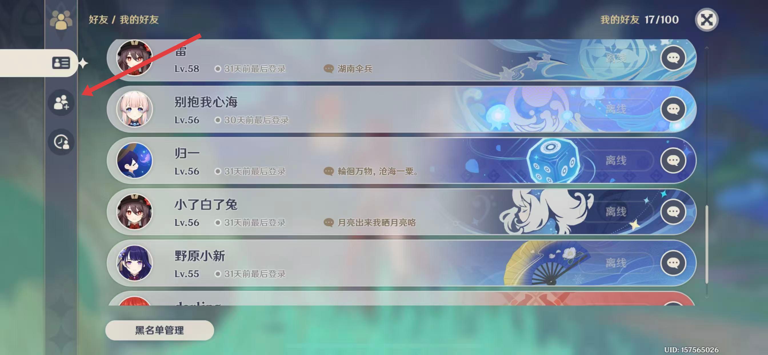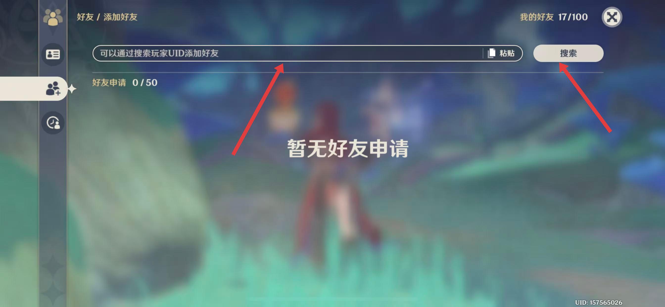 4、在弹出的添加好友界面,输入对方玩家的UID,点击搜索即可。