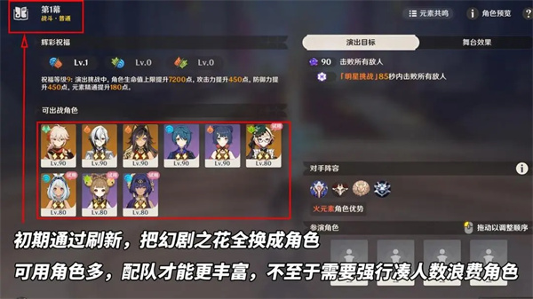 如困难模式,最低要求16位角色,但可额外编入4位角色。此时满编的初始「祝福等级」为8级。并且还增加了初始幻剧之花数量,后续将变为‘160+额外角色数量*30’,初期可选更多的增益/角色。