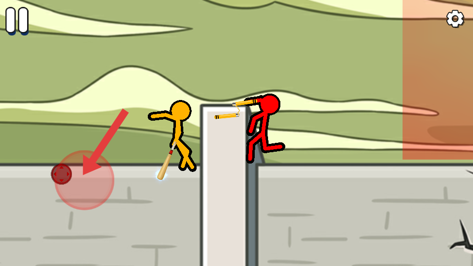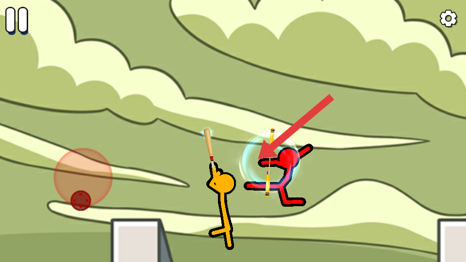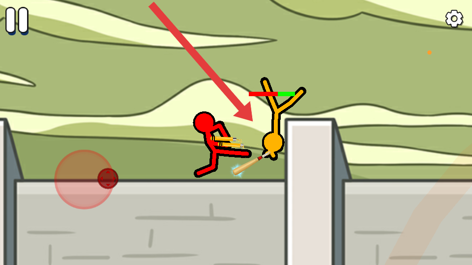 2、当与持武器的红色火柴人敌人交战时,抓住时机对箭头指向的敌人发起攻击,干扰攻击节奏,争取战斗优势。