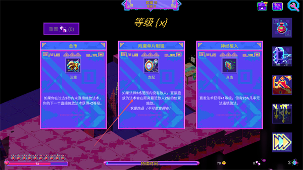 4、升级时选择“附魔单片眼镜”等技能,提升攻击效果,助力战斗和探索。