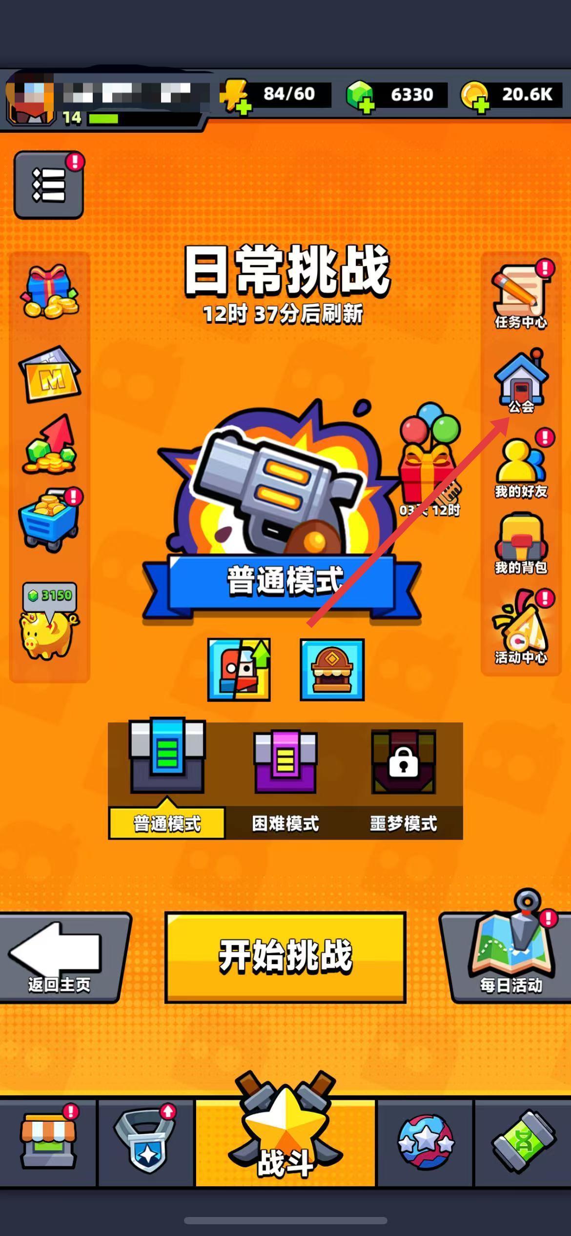 1、进入游戏主界面,点击界面右侧的公会图标,进入公会场景界面。