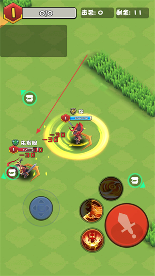 2、遇到敌人时,发动攻击,造成伤害,消灭敌人可获得经验和金币。