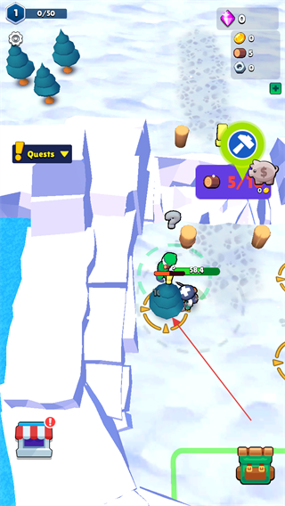 2、在雪地场景中移动,探索不同区域,触发任务如带有感叹号的标识,完成任务可获得奖励。
