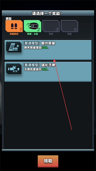 4、选择奖励如额外容量,提升角色属性,增强后续战斗能力,领取后继续挑战。