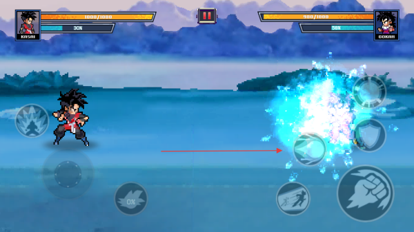 2、战斗时,操控虚拟摇杆移动角色,点击拳脚按键攻击,遇到对手技能,按格挡键防御,积累能量后,触发特殊技能按键,释放强力招式制敌。