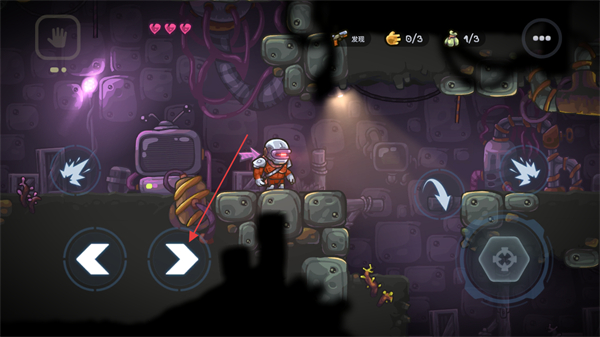 2、移动角色至新区域,找到带箱子的平台,点击右侧箭头可切换交互功能。