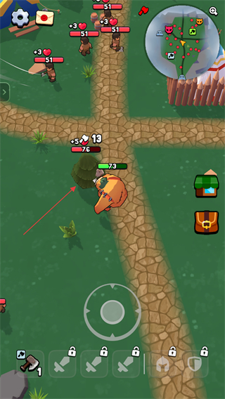 4、沿交叉路径前进,攻击敌人获取生命等加成,保持战力,向地图目标点推进。