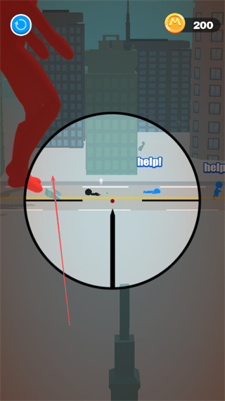3、通过狙击镜精准瞄准巨人,避开平民蓝色help!标识,确保射击命中巨人。
