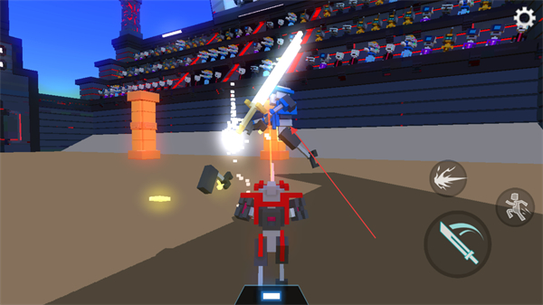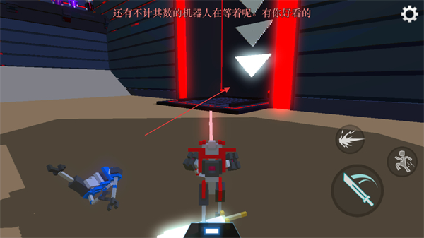 1、操控红灰机器人进入格斗场地,准备迎战敌方机器人。