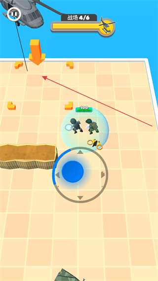 2、操控队伍移动,利用技能蓝色范围攻击清理敌方单位,推进战场进度当前战场4/6。