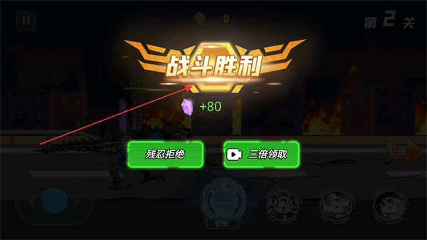 4、消灭所有僵尸后获得战斗胜利,领取奖励,积累资源用于机甲升级,继续挑战新关卡。