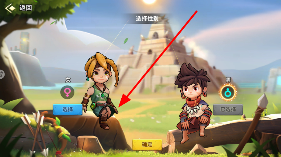 1、玩家体验首先在角色创建界面,可选择男或女性别,挑选好后点击确定,即可生成角色,开启在酋长你别跑中的冒险之旅。