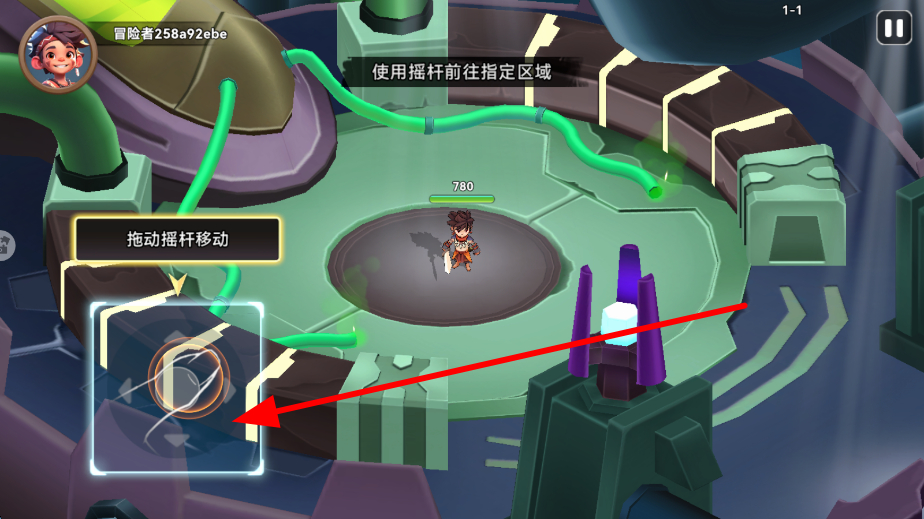 2、进入游戏的场景后,拖动摇杆来移动角色,借助摇杆能灵活控制角色在场景中行进,前往指定区域,探索不同的冒险场景。