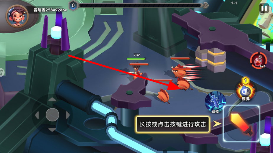 3、当遇到敌人时,长按或点击攻击按键,对敌人进行攻击,运用攻击技能击败敌人,推进冒险进程,获取战斗带来的奖励与成就感。