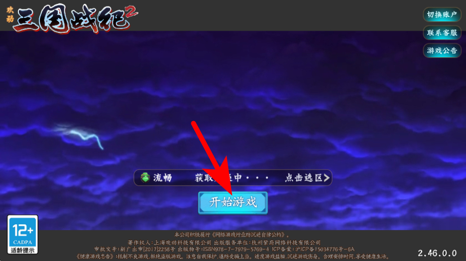 1、打开三国战纪2游戏,点击开始游戏按钮,进入游戏主界面。