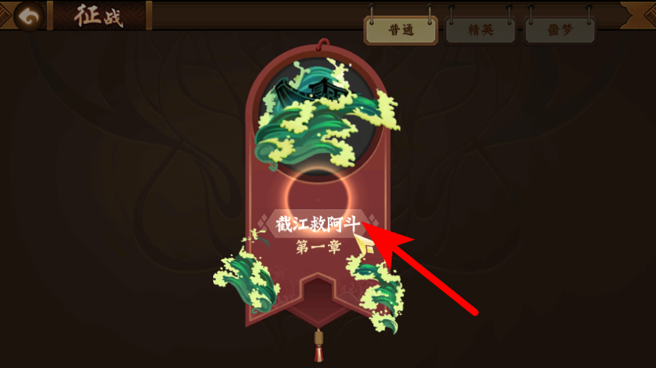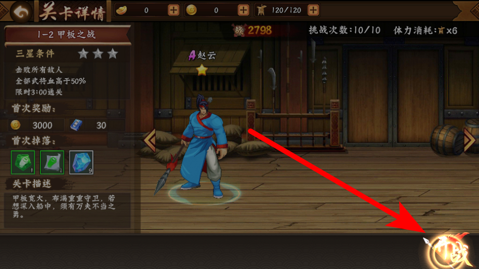 3、在征战关卡选择页面,选择第一章截江救阿斗的关卡,进入关卡详情页面。