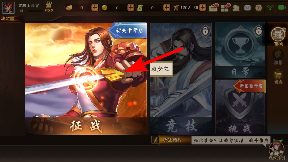 2、在游戏主界面中,点击征战模式,进入征战关卡选择页面。