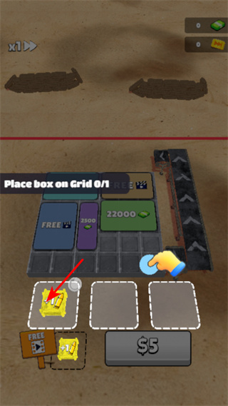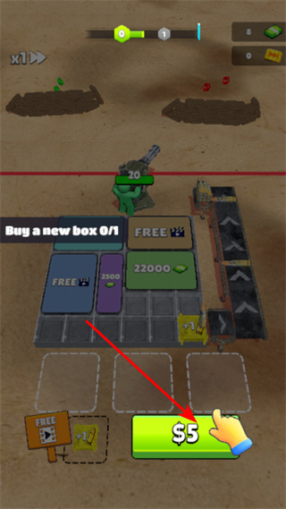 1、点击绿色的$5按钮购买新箱子,完成Buy a new box0/1任务,这是游戏初期拓展资源的关键操作。
