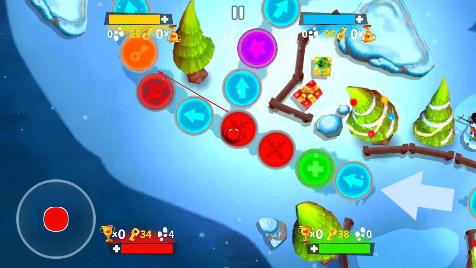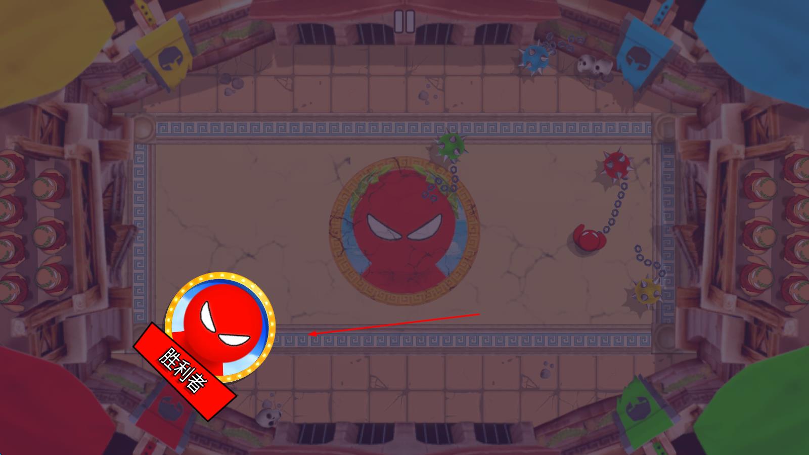 3、在竞技场场景,操控红色角色,利用场景元素,让角色抵达胜利区域,获取“胜利者”标识。