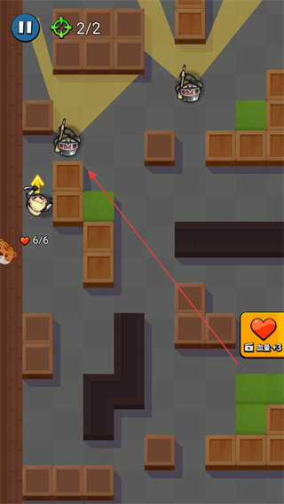 3、面对多名敌人时,利用地形木箱、草丛隐藏身形,逐个击破,保持血量。