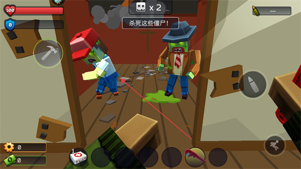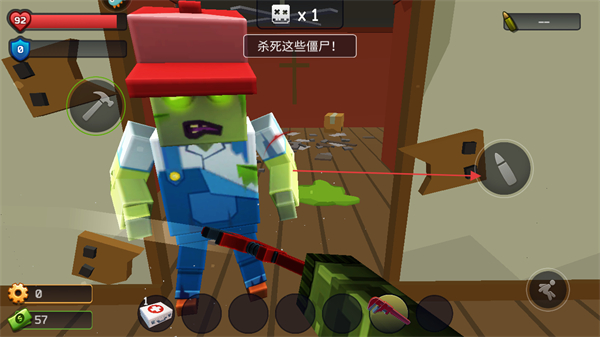 3、面对入侵的僵尸,使用武器发起攻击,消灭所有僵尸。