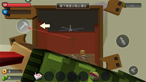 2、点击锤子按钮,修复或加固大门,阻止僵尸通过。