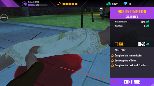 4、任务完成后,点击CONTINUE,领取奖励,继续挑战新任务。