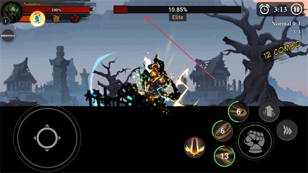 2、持续释放技能攻击敌人,提升连击数至12COMBO,进一步削减敌方血量。