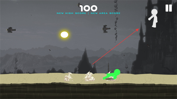 2、操控火柴人在场景中移动,躲避障碍并积累分数,达成100分的新记录。