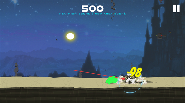 4、持续战斗并积累分数,击败更多敌人,将分数提升至500,推进游戏进程。