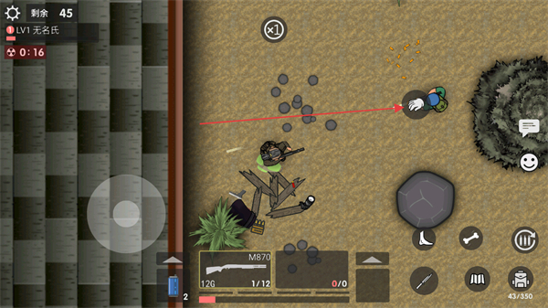 4、击败敌人,获取武器如M870,利用武器消灭更多敌人,在剩余人数中坚持到最后。