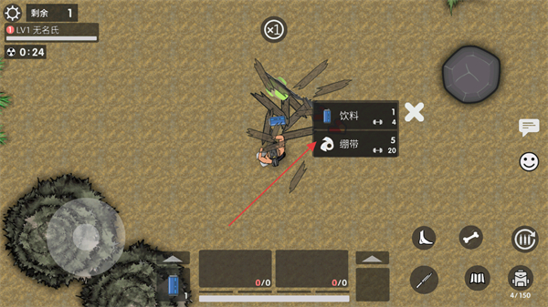 3、打开资源堆,收集饮料、绷带等物资,提升生存能力。