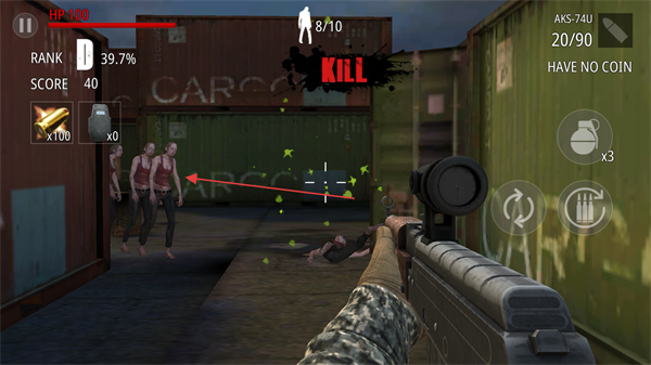 2、面对多个僵尸时,依次瞄准射击,逐个击破,提升排名。