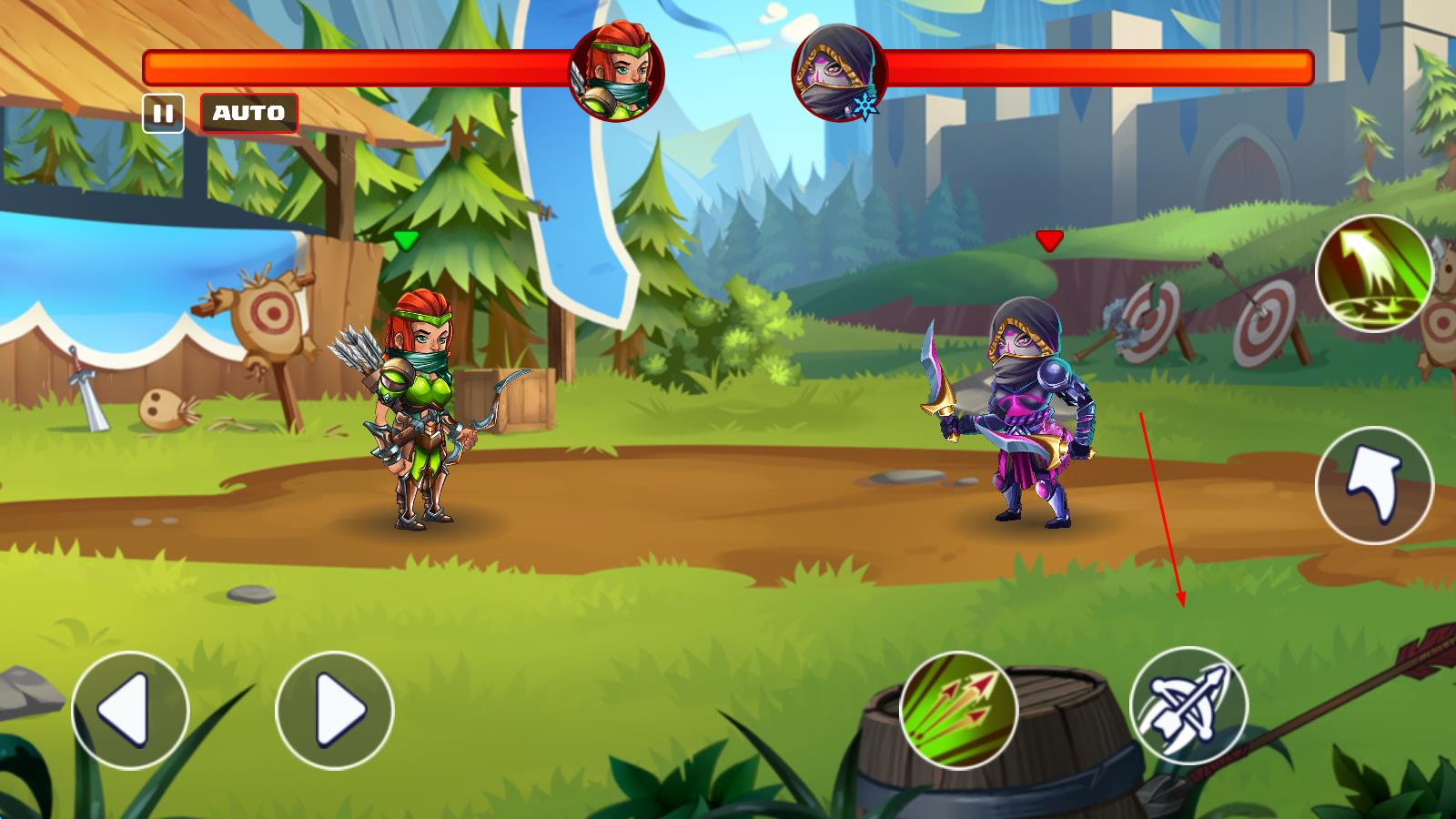 2、在对战中,观察敌方攻击间隙,点击攻击键发起进攻,遇到特殊技能释放时机,点击对应技能图标,配合移动、跳跃灵活战斗 。