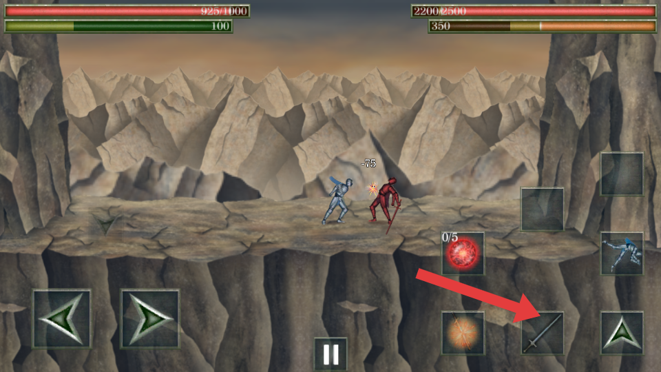 4、与敌人遭遇时,点击箭头指向的剑形攻击按键,发动近战攻击,对敌人造成伤害,展开战斗对决。