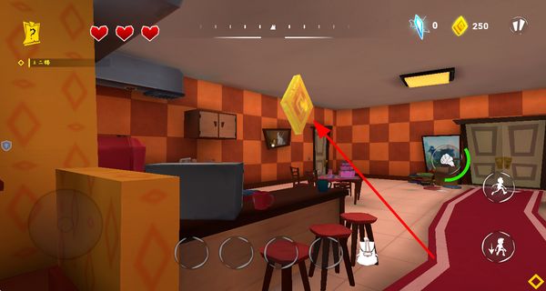 3、玩家在在房间中收集黄色菱形金币,获取资源,用于解锁区域或提升能力。