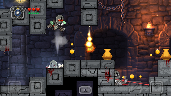 3、利用跳跃和双击跳跃功能,跨越障碍,攻击高处敌人,收集金币和道具。