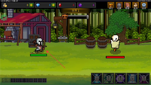 1、操控弓箭手在场景中攻击稻草人等目标,积累经验和资源。