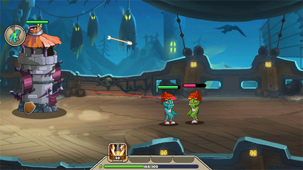 1、操控己方蔬菜角色如蓝色僵尸移动,靠近敌方僵尸发起攻击。