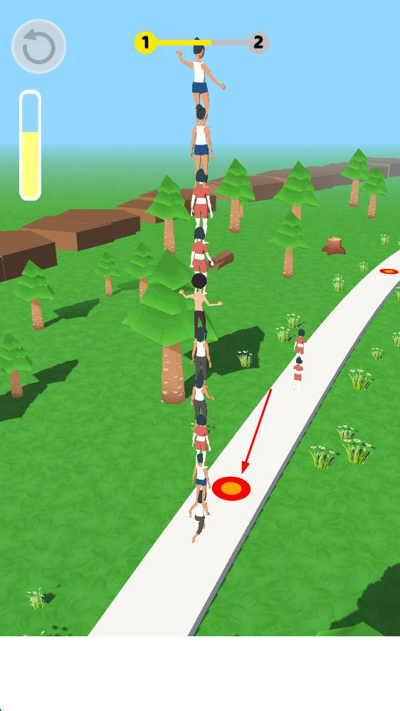 2、前行时留意道路上的橙色光圈,让叠人梯队底部角色踩中,可触发特殊效果,助力通过障碍,同时躲避途中可能出现的陷阱,保持队伍稳定。