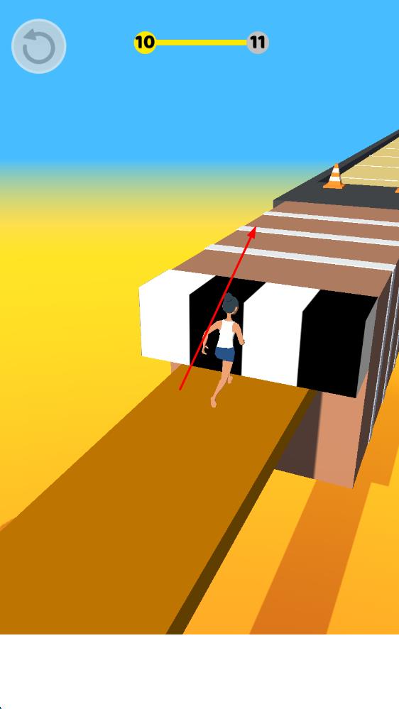 3、遇到像钢琴块等特殊路段,引导角色带领叠人梯队按箭头指示方向,有序通过,注意节奏与步伐,顺利抵达阶段目标,通过关卡。