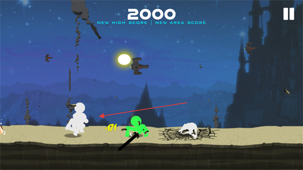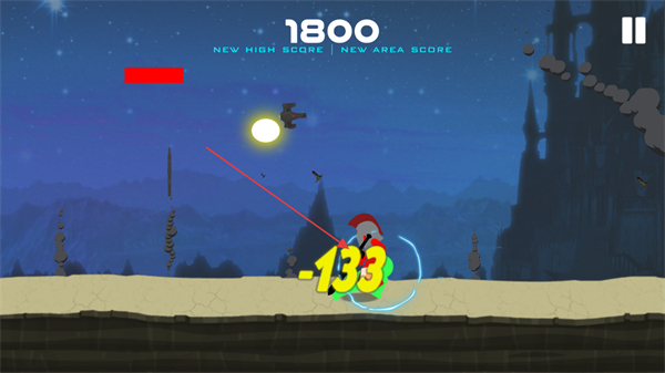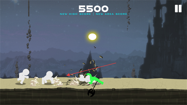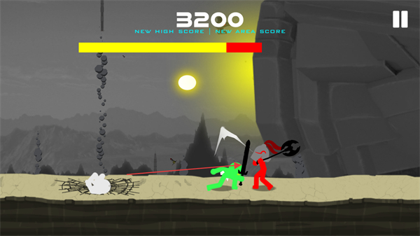 1、操控绿色火柴人攻击敌方单位,造成-133伤害,将分数提升至1800,推进进程。