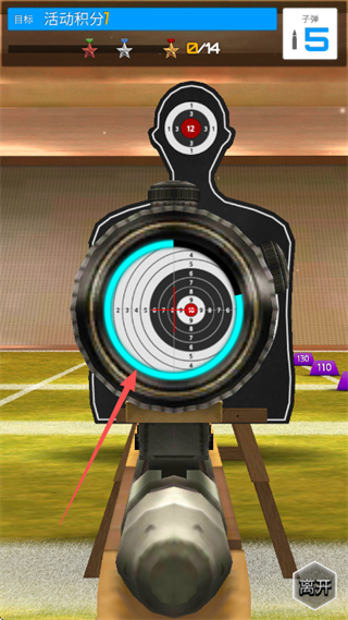 2、瞄准靶心区域,待瞄准圈稳定后开枪。