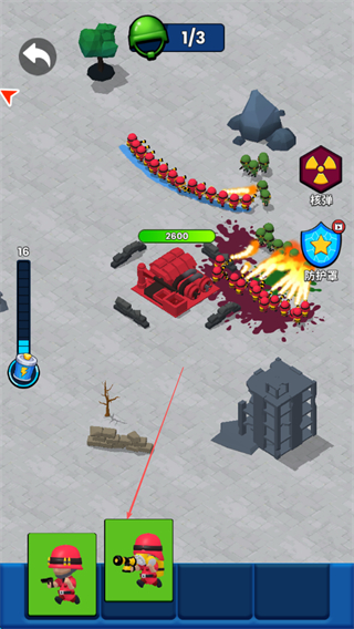3、解锁火箭炮兵种后,部署其攻击敌方建筑,造成大范围伤害,快速推进关卡。