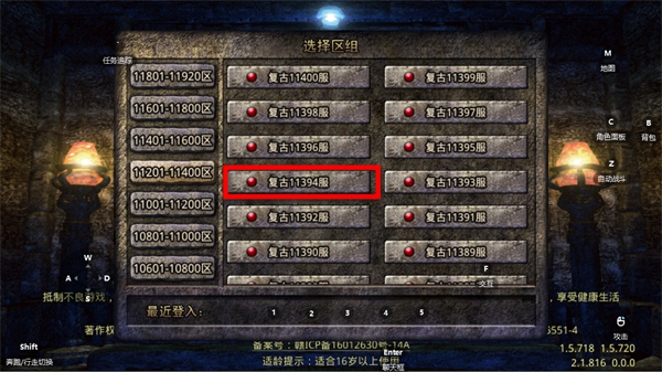 3、在区组分类下,选择具体的服务器,如复古11394服。