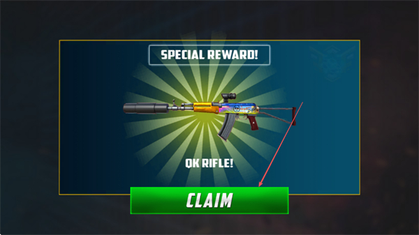 3、完成关卡后,可领取特殊奖励如强力枪械OKRIFLE,提升自身火力。