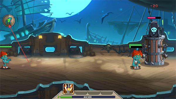 3、推进战场,攻击敌方建筑如骷髅立柱,削减其血量显示-20以推进关卡进度。
