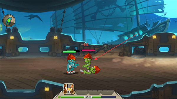 1、操控己方蔬菜角色移动,靠近敌方僵尸后发起普攻,逐步消耗其血量如击败倒地的僵尸。